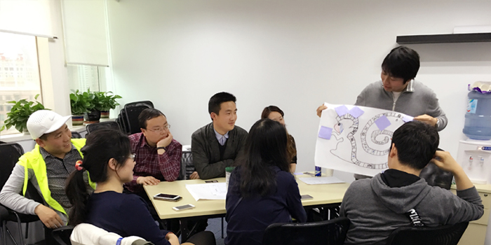 其中的IT互聯小組,由于大家都是來自IT通訊行業,大家在說項目故事時,會經常不自覺的開始發散,其他同學一起分析起說故事的人,所說的項目問題在哪里,并且給出自己的建議。好在組長作為本次活動的PM,很好的把控時間,引導大家適時結束話題。