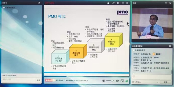 首先,熊老師先讓大家互相之間對于自己公司內部是否存在PMO以及PMO在公司的項目管理中起到的作用做了一個簡單交流,粗略的統計了現場學友對于PMO的了解程度,并對實際工作環(huán)境中的PMO的常見的失敗原因做了簡單的歸納。現場有幾位學友也發(fā)表了對于自己公司內的PMO沒有取得明顯效果的一些看法,講座活動漸入佳境。