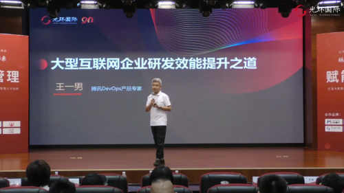 最后一位登場的嘉賓是騰訊DevOps專家王一男,他與現場同學一起分享了“大型互聯網企業研發效能提升之道”。